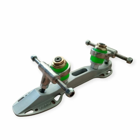 PLANCHAS XT AURA: para figuras obligarorias (escuela), de aluminio muy liviana, mecanizada. Suspensiones de elastómero con sistema Click Action y pivote regulable. Ejes de 7 mm.